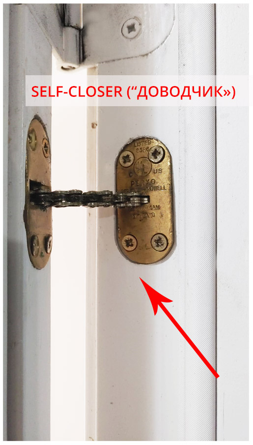 Для этой же цели существует и Self-Closer (“доводчик»), автоматически закрывающий дверь. Безусловно, открытие двери с доводчиком намного сложнее, чем обычной. Ее невозможно открыть толкнув ногой. Маленьким детям подчас тоже нелегко с ней справиться. Но овчинка стоит выделки.