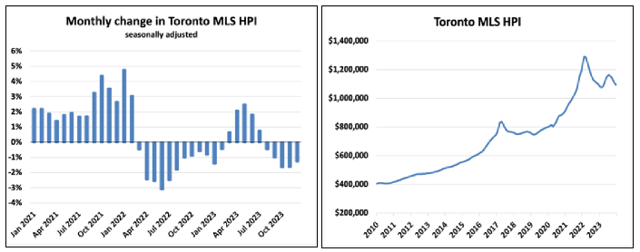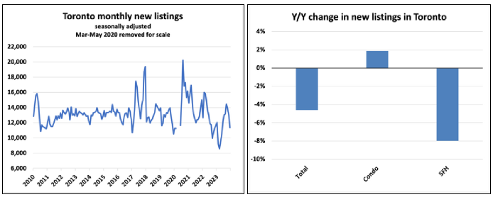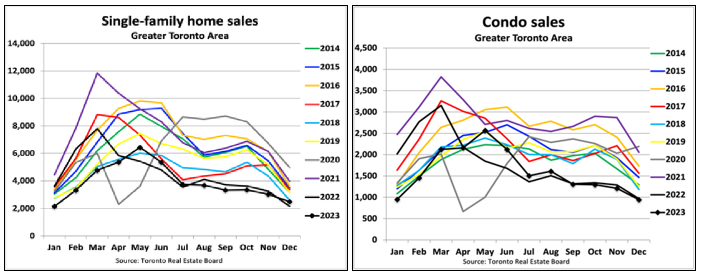 Продажи выросли чуть более чем на 10% по сравнению с декабрем 2022 года, но весь этот прирост пришелся на сегмент односемейных домов, в то время как продажи квартир в 416 и 905 по-прежнему были отрицательными по сравнению с прошлым годом: