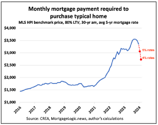 Учитывая умеренное снижение ставок и уверенность в восстановлении, неудивительно, что продажи домов            отскочат от безумно низких уровней, наблюдавшихся в конце 2023 года. В прошлом месяце я писал, что в следующем месяце следует ожидать скачка продаж на 10-20%. несколько месяцев, какое-то количество  высококвалифицированных покупателей, которые ждали в сторонке, снова начинают выходить на рынок. Предварительные оценки экспертов по недвижимости по всей стране показывают, что в декабре продажи с учетом сезонных колебаний выросли на 10% по сравнению с ноябрем. Это отличная новость, и нет никаких оснований думать, что ситуация не улучшится и дальше.
