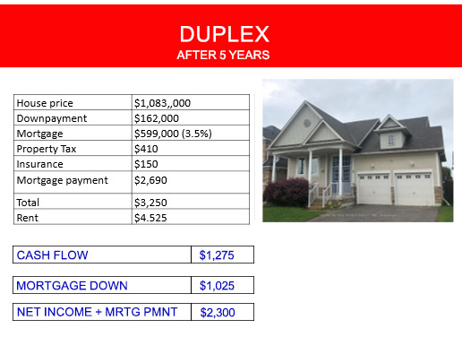 Теперь ежемесячный CASH FLOW составляет $1,275, а с учётом погашения ипотеки – и вовсе  $2,300 в месяц. То есть, – 17% годовых на инвестируемые деньги, а если принять во внимание выплаченную ипотеку и рост цены за 5 лет, что составит 322,000, то, поделив на инвестируемые деньги, получится 200% за 5 лет или 40% годовых, суммарная прибыль составляют 57% годовых.