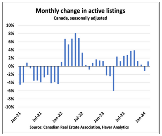 Новые листинги растут по стране, но падают в Онтарио Главная история по-прежнему связана с предложением. На национальном уровне новые листинги выросли на 1,6% за месяц, при этом в Британской Колумбии отмечен рост на 5%, и они остаются на 20% выше уровня 2023 года. В отличие от этого, в Онтарио листинги снизились на 0,3% за месяц.