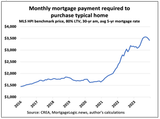 Ожидается, что это будет продолжаться, поскольку ставки отстают, как у крупных банков, в конечном итоге, сравняются с теми, кто начал действовать раньше. Это отрадная новость, поскольку картина доступности была довольно мрачной. На этой неделе мы узнали, что доступность жилья в стране достигла рекордно низкого уровня в третьем квартале, согласно данным Банка Канады. (см. рис. 11).