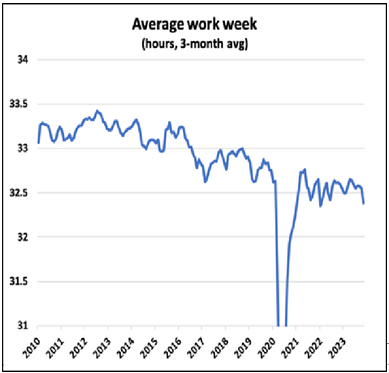 Объясните это снижением средней продолжительности рабочей недели, которая показала самое большое ежемесячное падение с апреля 2022 года.